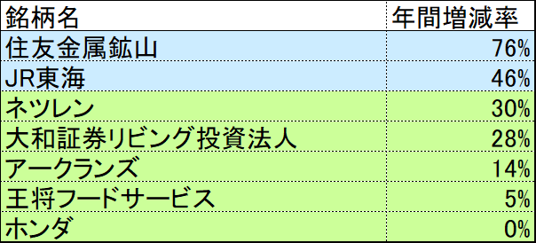 住友金属鉱山とJR東海が大幅に上昇しました。東海道新幹線に乗ることが多いので、チャンスがあれば買い戻したいです。