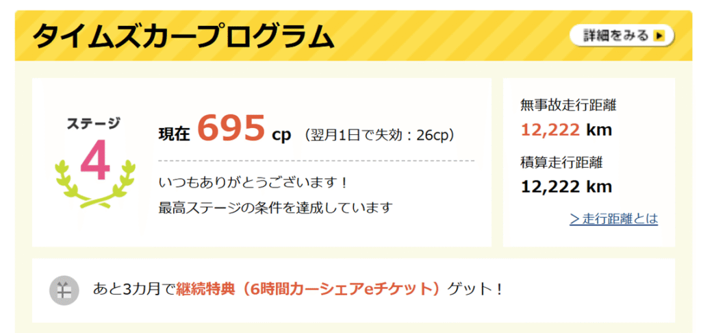 タイムズカープログラムでは、車内にゴミを残さない、汚れた所を清掃、給油、洗車、急加速・急減速をしない、など善行を積むとポイントがもらえます。タイムズカー愛が強く、利用した時にガソリンが少なくなった時には給油・洗車を行い、ウェットティッシュで車内を清掃してから返却しています。