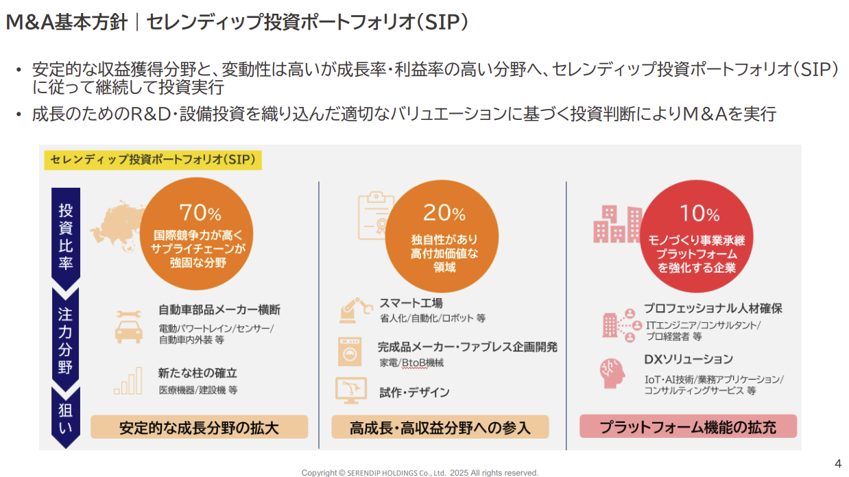 セレンディップは中小部品メーカーを買収し、経営に参加しています。M&Aを仲介する形よりも中小企業の競争力を高められ、投資企業の利益が増えるので、お互いにシナジーがあると思います。
