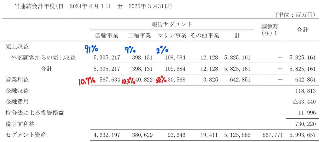四輪車、二輪車、船外機及び電動車いす他の製造販売を主な内容とし、さらに各事業に関連する物流及びその他のサービス等の事業を展開