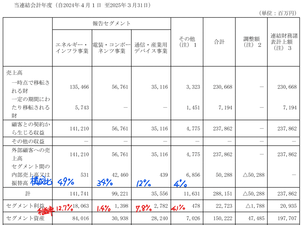 建設関連・電力インフラ向けの比率が高く、景気変動の影響を大きく受けそうです。