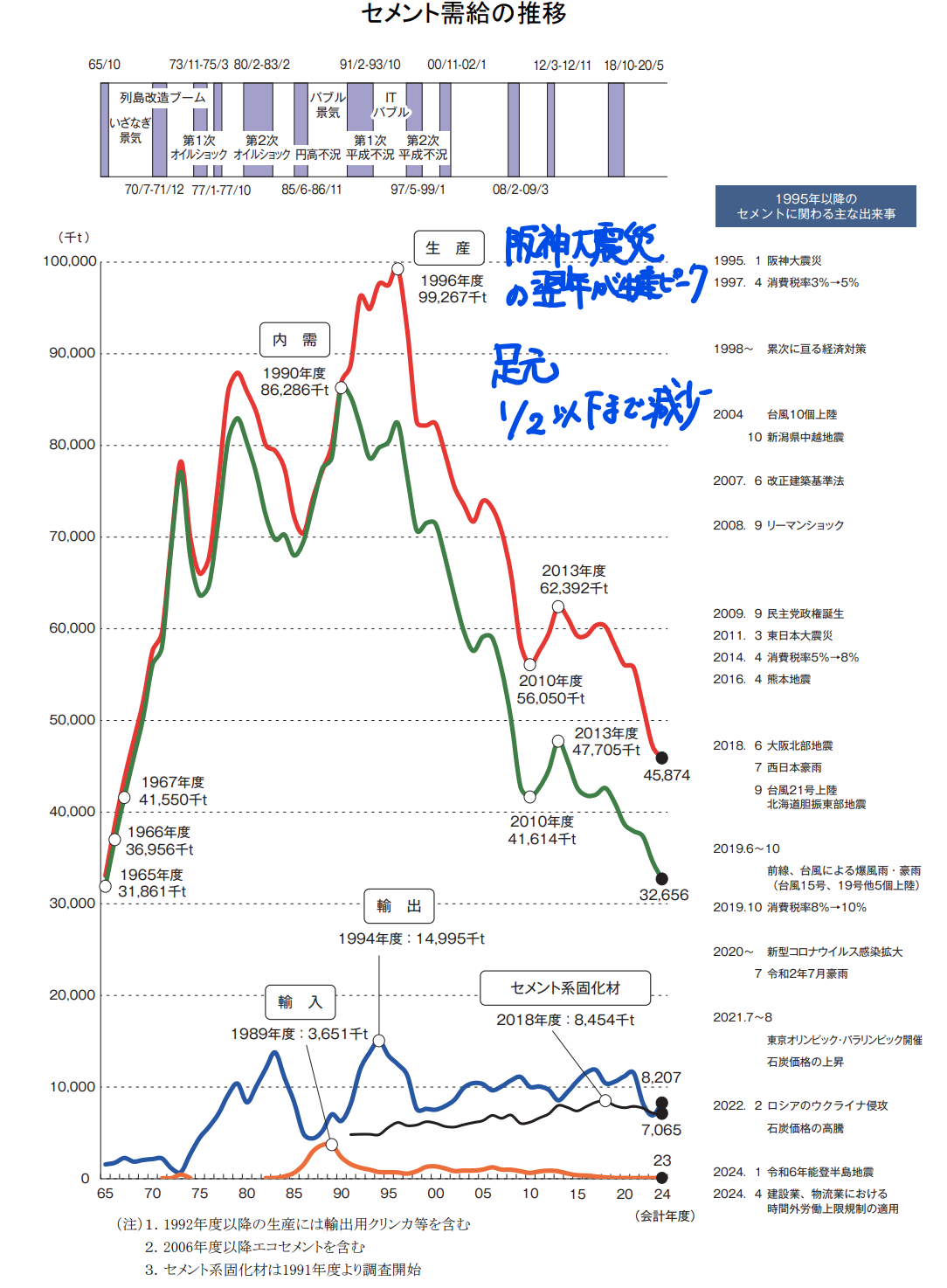 日本のセメントの生産量が一番多かった時期をご存じですか?