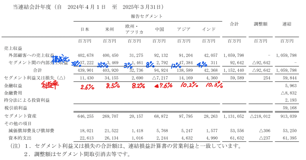 海外売上比率が7割あり、従業者数は日本よりも米州の方が多くなっています。また、トヨタ自動車向けが6割程度あります。