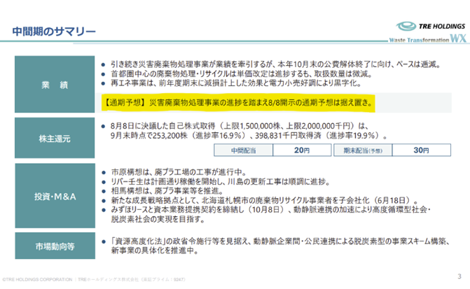 TREは資源リサイクル事業を行っており、円安でスクラップ価格も上昇しています。首都圏の再開発が動き出すと、発生量も増加し業績上振れ余地があると思います。